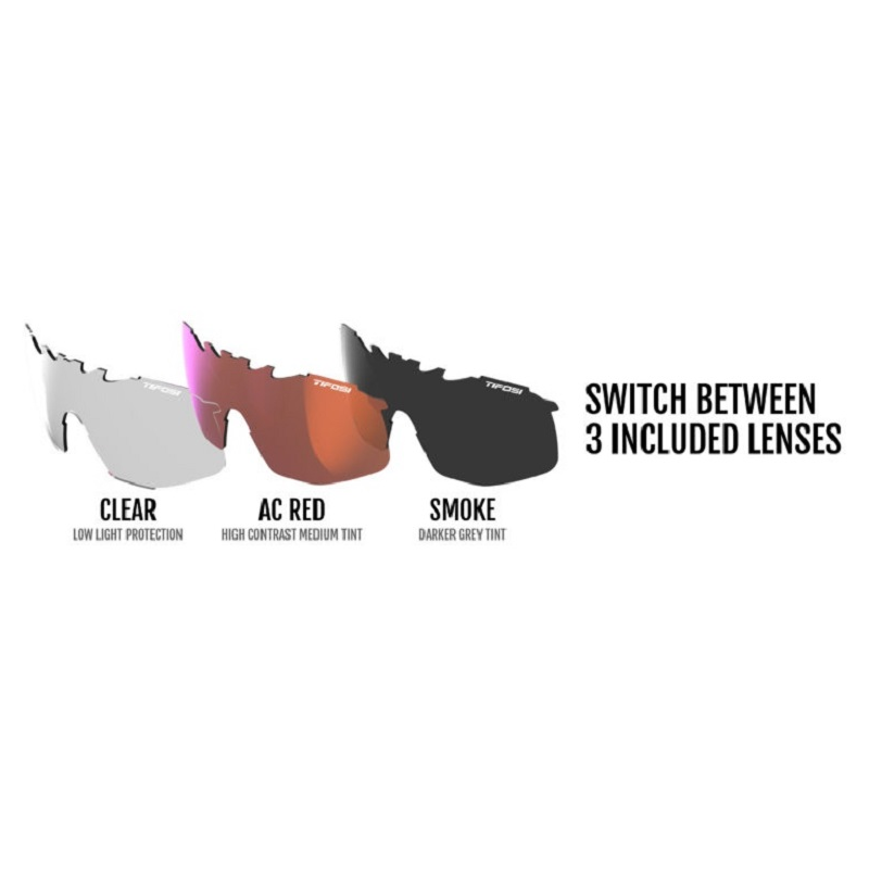 | Lens | Smoke / AC Red / Clear – Shatterproof polycarbonate interchange lenses for bright and low light scenarios |